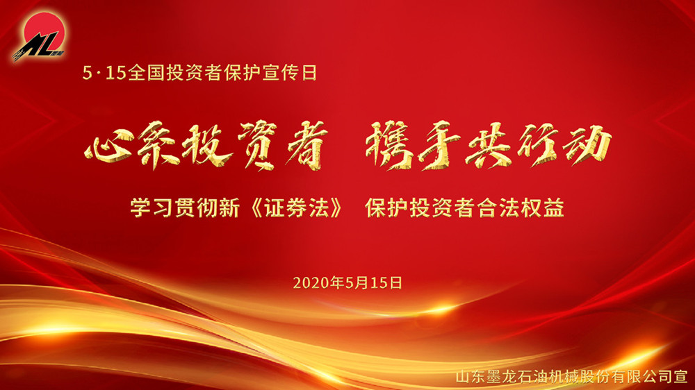 為做好“5.15全國投資者保護宣傳日”的投資者保護宣傳,山東墨龍(002490)積極響應山東證監局號召,以“心系投資者,攜手共行動—學習貫徹新《證券法》,保護投資者合法權益”為活動主題,開展投資者保護宣傳活動。公司將持續加強公司信息披露質量、增加公司透明度,積極開展投資者互動溝通工作,營造良好的投資者關系氛圍,增進投資者對上市公司的了解,全方位引導投資者樹立正確投資理念,更好地維護投資者的合法權益。