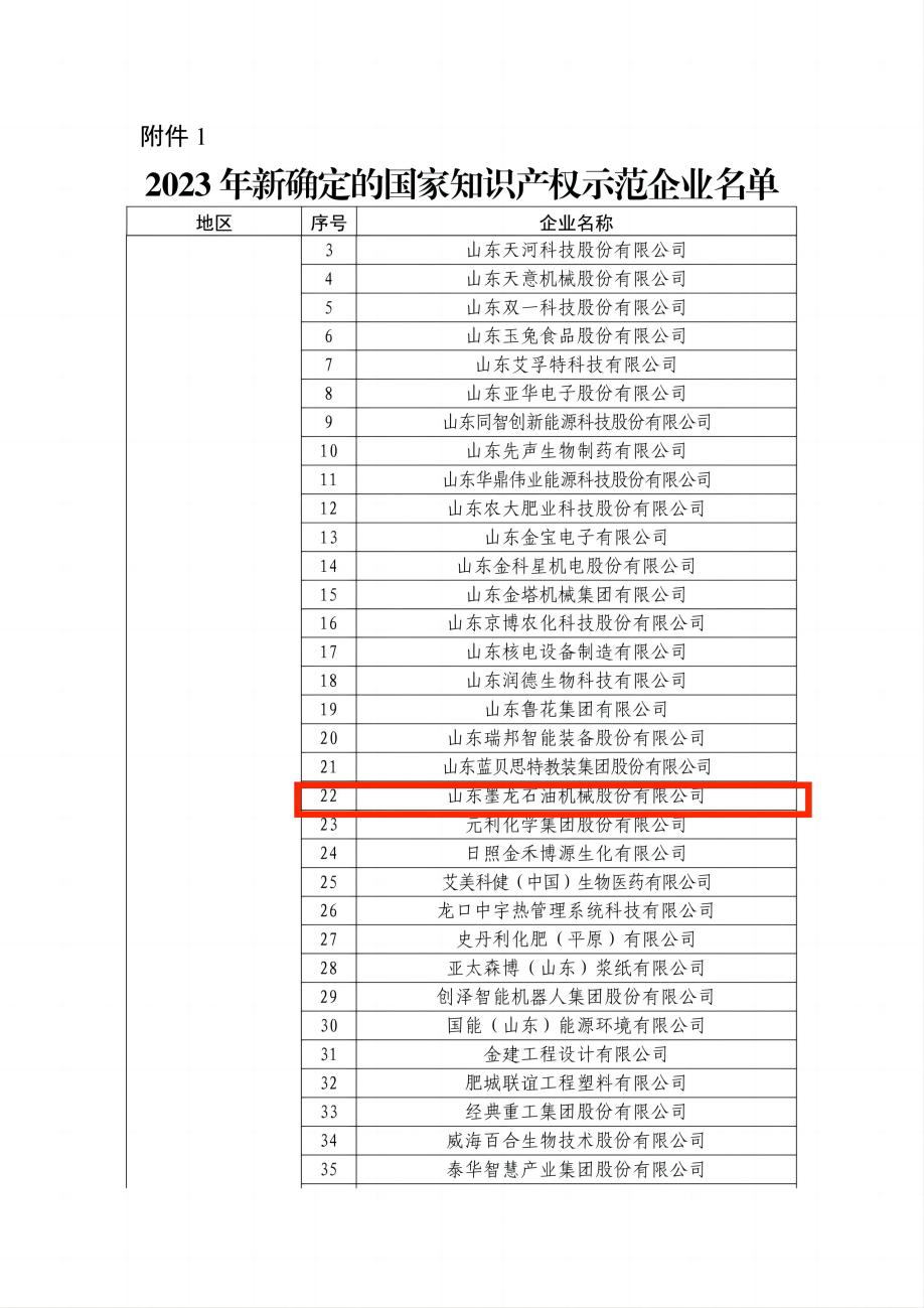2023年11月29日,國家知識產權局公布了2023年新一批及通過復核的國家知識產權示範企業和優勢企業名單,山東墨龍石油機械股份有限公司(以下簡稱「山東墨龍」)成功入選,成為壽光市首家國家知識產權示範企業。
